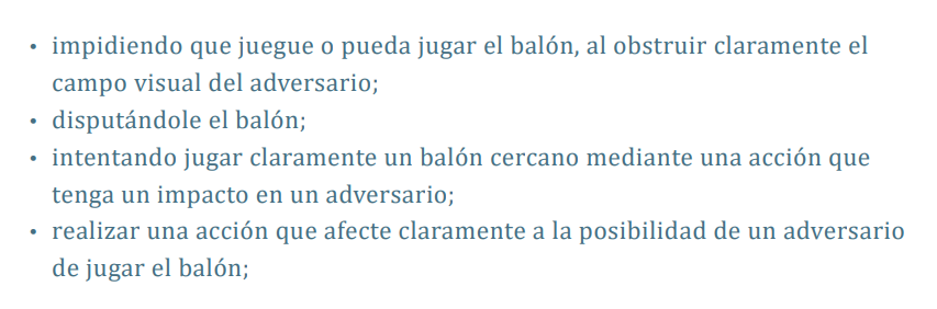 Realizar una acción que afecte claramente a la posibilidad de un adversario de jugar el balón.