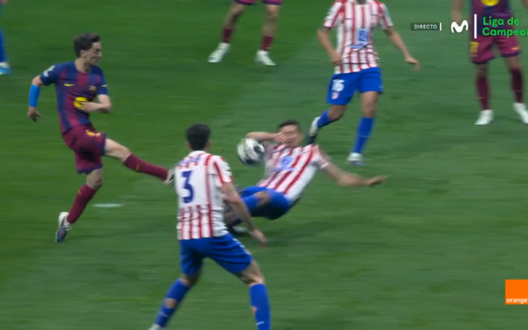 La segunda acción es la roja a Pau Cubarsí. Giuliano Simeone encara portería y es derribado por detrás. El Barcelona argumenta que no hay control del balón, pero la clave está en que el balón termina pasando entre ambos jugadores, lo que habría dejado al atacante solo ante el portero. Reglamentariamente, esto encaja con ocasión manifiesta de gol, aunque genera debate por el control previo.